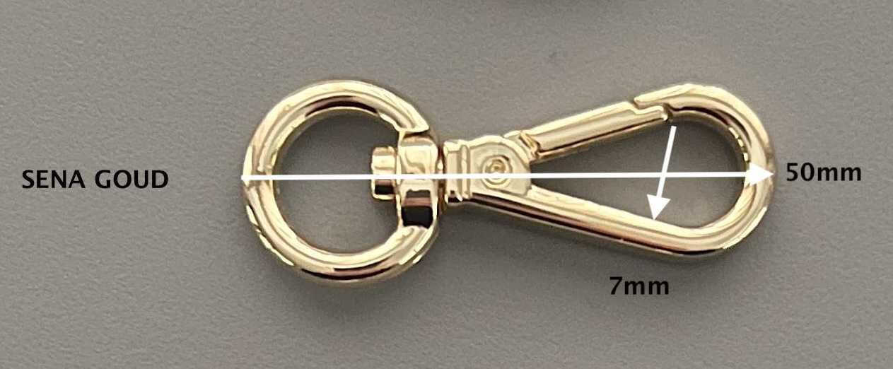 Is het haakje/clip van de tasketting stuk? Clip Sena is een 'grote' musketonhaak die wij standaard gebruiken bij onze goudkleurige ronde ketting in de maat L.