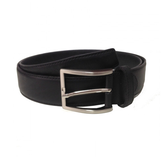 Heren riem van zwart leer met zilverkleurige gesp. Lengte: 110 cm, breedte: 3,8 cm. Eenvoudig zelf in te korten. Lees meer