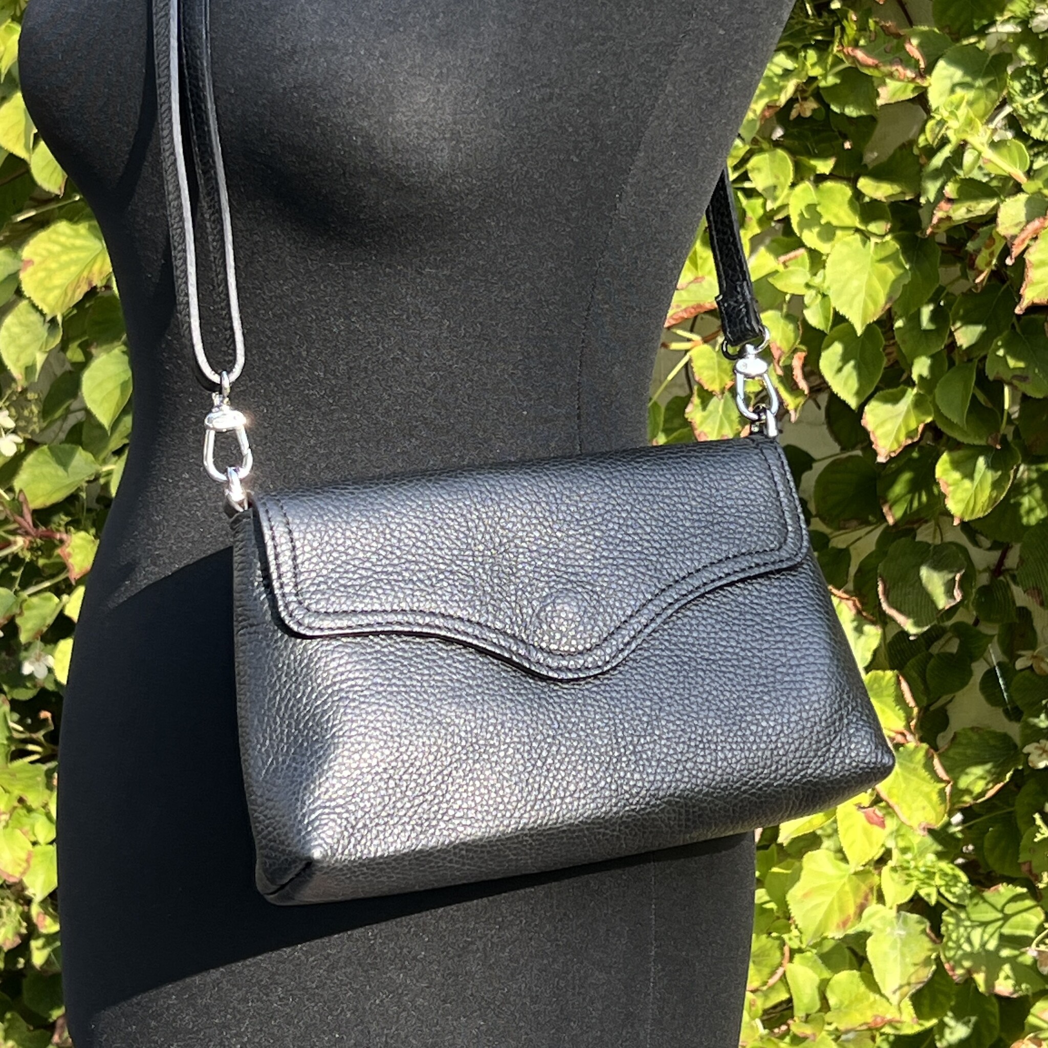 Lichtgewicht schoudertasje van soepel leer. Deze tas draagt comfortabel over de schouder of crossbody doordat de leren schouderriem verstelbaar is van 60cm tot 120cm.