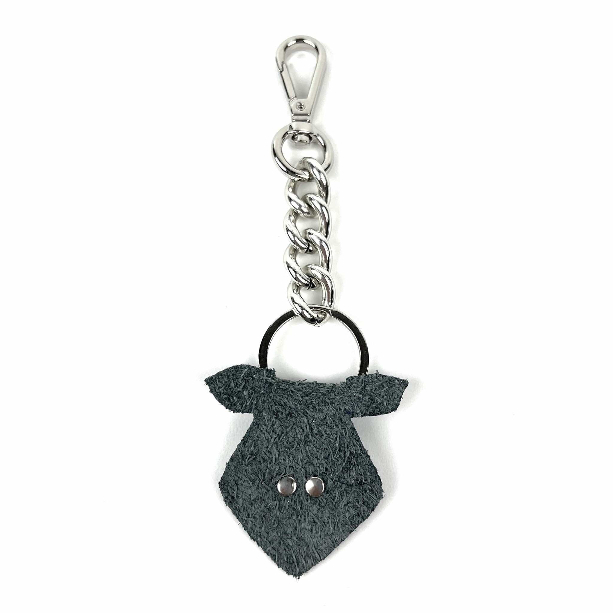 Sleutelhanger met leren koeienkop aan een zilverkleurige ronde ketting met clip. Lees meer