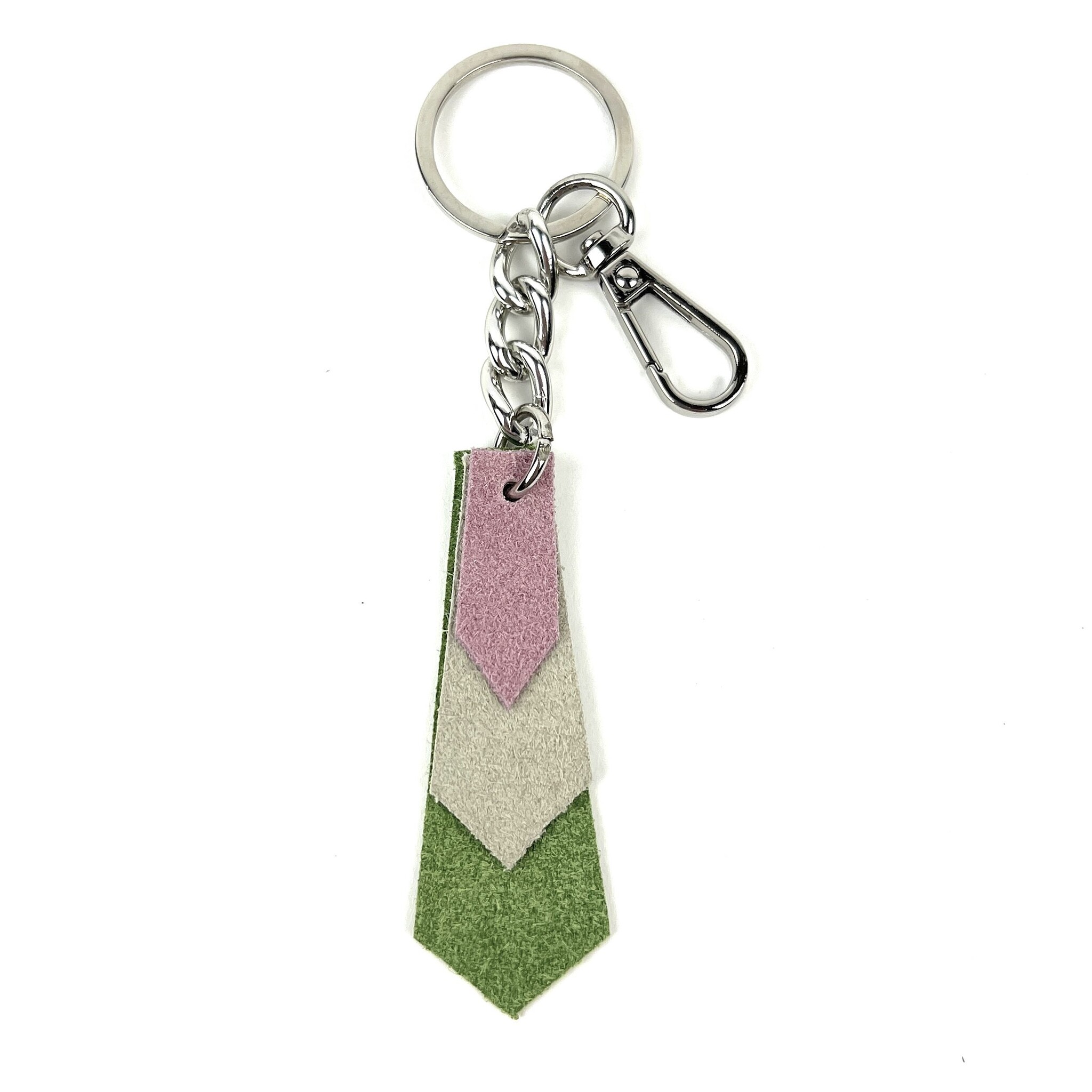 Handige sleutelhanger met drie suède pijlen. De grootste heeft een lengte van (7,5cm). De sleutelhanger is voorzien van een zilverkleurige ketting met platte sleutelring en een platte musketonhaak met een doorgang van 6mm.
